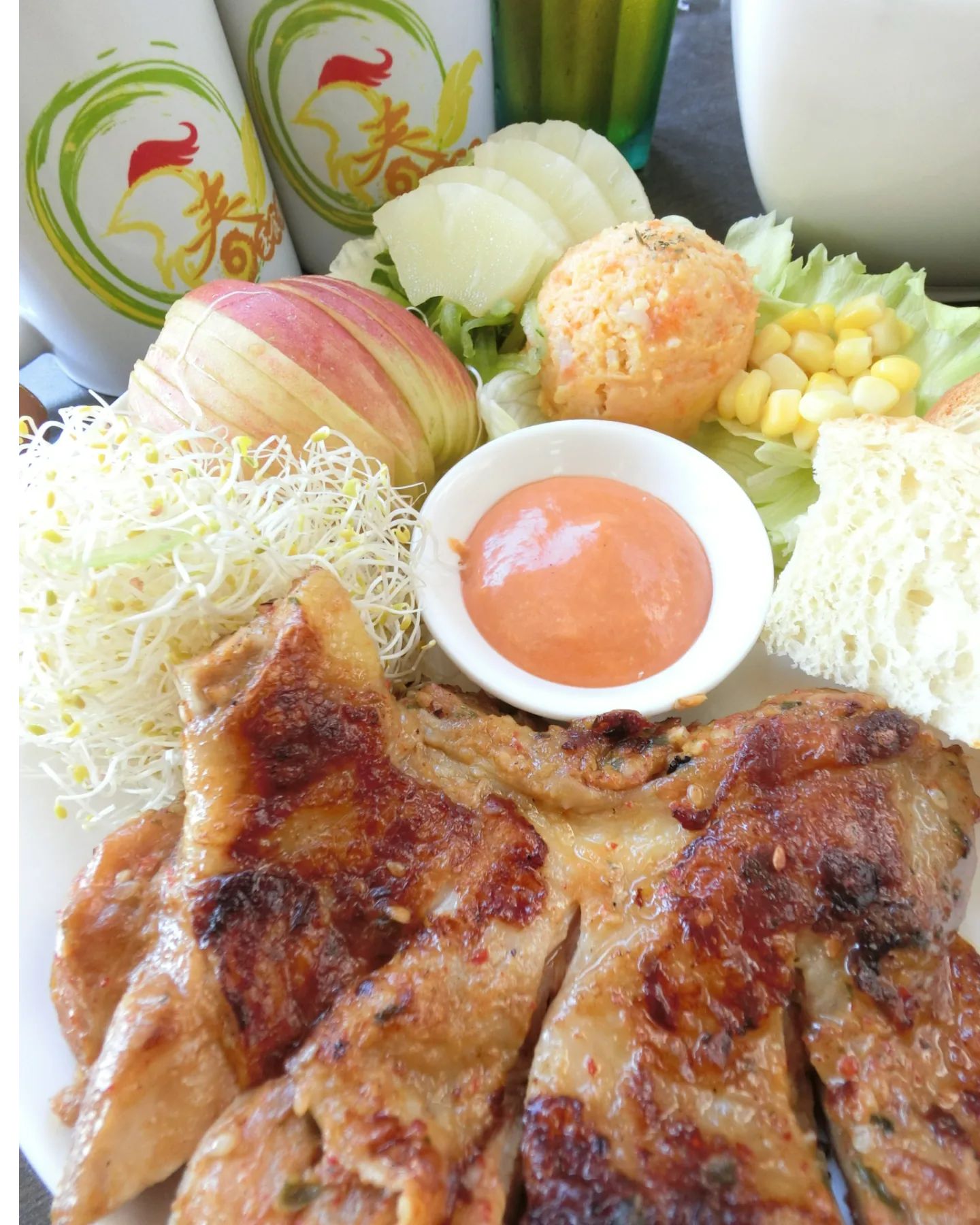 你喜歡“吃雞‘’嗎? 韓式煙燻烤雞腿將是您的好選擇 雞腿原肉 軟嫩不柴 鮮嫩多汁 香氣四溢 配上清爽蔬果沙拉與香酥丹麥吐司。 營養豐富的烤雞腿拼盤,開啟活力滿滿的一天 營業電話:04_26318599 營業時間:平日6:00_13:00 假日7:00_13:00 營業地址:台中市沙鹿區北勢東路346號